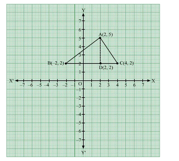 Plot the points A(2, 5), B(–2, 2) and C(4, 2) on a graph paper. Join AB, BC and AC. Calculate the area of ∆ABC.