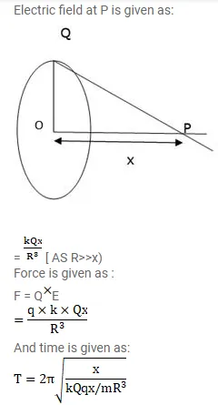 $\mathrm{T}=\sqrt{\frac{16 \pi^{3} e_{0} \mathrm{mR}}{\mathrm{qQ}}}$