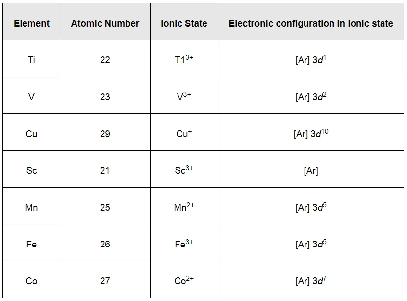 From the above table, it can be easily observed that only Sc3+ has an empty d-orbital and Cu+ has completely filled d-orbitals. All other ions, except Sc3+ and Cu+, will be coloured in aqueous solution because of d−d transitions.