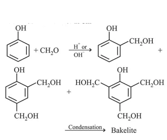 Formation of Bakelite follows electrophilic substitution reaction of phenol with formaldehyde followed by dehydration.