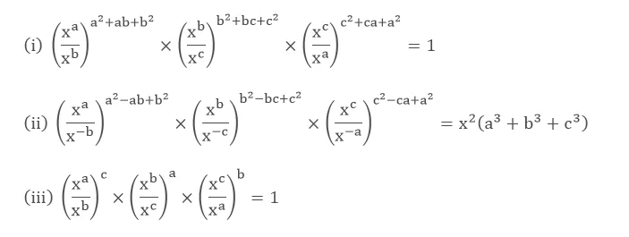 $=x^{a^{3}}-b^{3} \times x^{b^{3}-c^{3}} \times x^{c^{3}}-a^{3}$