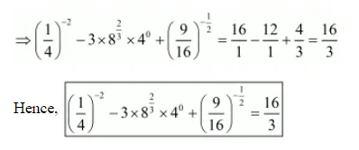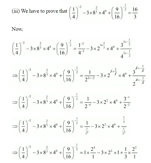 (iii) $\left(\frac{1}{4}\right)^{-2}-3 \times 8^{2 / 3} \times 4^{0}+\left(\frac{9}{16}\right)^{-1 / 2}=\frac{16}{3}$