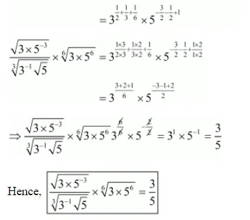 (i) We have to prove that $\frac{\sqrt{3 \times 5^{-3}}}{\sqrt[3]{3^{-1} \sqrt{5}}} \times \sqrt[6]{3 \times 5^{6}}=\frac{3}{5}$