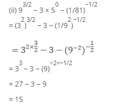(ii) $9^{3 / 2}-3 \times 5^{0}-(1 / 81)^{-1 / 2}$