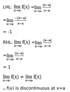 $f(x)=\left\{\begin{aligned} \frac{|x-a|}{x-a}, & \text { when } x \neq a ; \\ 1, & \text { when } x=a \end{aligned}\right.$ is discontinuous at $x=a$