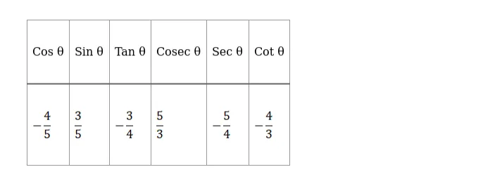 Since, θ is in IInd Quadrant. So, cos and tan will be negative but sin will be positive.