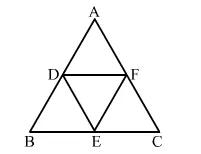 ∆ABC is shown below. D, E and F are the midpoints of sides AB, BC and CA, respectively.
