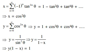 If $x=\sum_{n=0}^{\infty}(-1)^{n} \tan ^{2 n} \theta$ and $y=\sum_{n=0}^{\infty} \cos ^{2 n} \theta$, for