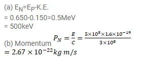 (b) What is the momentum of this neutrino in $\mathrm{kg}-\mathrm{m} / 3$ ? Use the formula applicable to a photon.