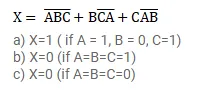 Let $\mathrm{X}=\overline{\mathrm{ABC}}+\mathrm{B} \overline{\mathrm{CA}}+\mathrm{C} \overline{\mathrm{AB}}$
