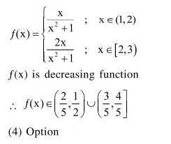 Question: Let $f:(1,3) \rightarrow \mathrm{R}$ be a function defined by $f(\mathrm{x})=\frac{\mathrm{x}[\mathrm{x}]}{1+\mathrm{x}^{2}}$, where $[\mathrm{x}]$ denotes the greatest integer $\leq \mathrm{x}$. Then the range of $f$ is