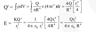 Let $\rho(\mathrm{r})=\frac{\mathrm{Q}}{\pi \mathrm{R}^{4}} \mathrm{r}$ be the charge density distribution for a solid sphere of radius $\mathrm{R}$ and total charge $\mathrm{Q}$. For a point 'p' inside the sphere at distance $r_{1}$ from the centre of the sphere, the magnitude of electric field is :-