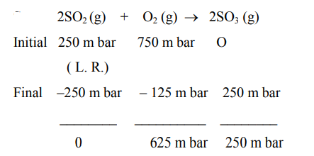 $\therefore$ Final total pressure $=625+250=875 \mathrm{~m}$ bar