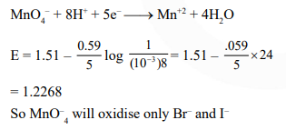 Question: At $298 \mathrm{~K}$, the standard reduction potentials are $1.51 \mathrm{~V}$ for $\mathrm{MnO}_{4}^{-} \mid \mathrm{Mn}^{2+}, 1.36 \mathrm{~V}$ for $\operatorname{oxidize}\left(\frac{\mathrm{RT}}{\mathrm{F}}=0.059 \mathrm{~V}\right):-$