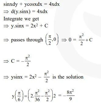 Let $\mathrm{y}=\mathrm{y}(\mathrm{x})$ be the solution of the differential equation $\sin \mathrm{x} \frac{\mathrm{dy}}{\mathrm{dx}}+\mathrm{y} \cos \mathrm{x}=4 \mathrm{x}, \mathrm{x} \in(0$,