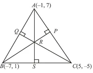 If a $\triangle A B C$ has vertices $A(-1,7), B(-7,1)$ and $C(5,-5)$, then its orthocentre has coordinates :