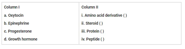 Rearrange the following hormones in Column I to match with their chemical nature in Column II