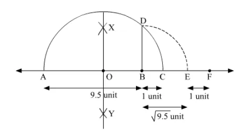 To represent $(1+\sqrt{9.5})$ on the number line, follow the following steps of construction: