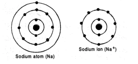 ion (Na^t) is formed by removal of one electron from the atom. Its electronic distribution is $K(2)$ and $L(8)$.