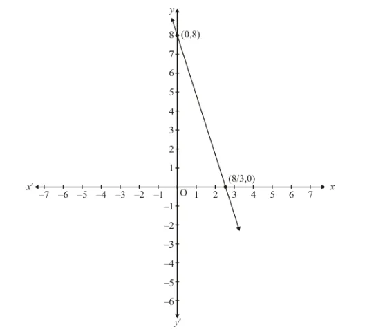 Draw the graph by plotting the two points $A(0,8)$ and $B(8 / 3,0)$ from table.