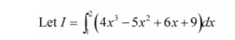$I=\left\{2^{4}-\frac{5 \cdot(2)^{3}}{3}+3(2)^{2}+9(2)\right\}-\left\{(1)^{4}-\frac{5(1)^{3}}{3}+3(1)^{2}+9(1)\right\}$