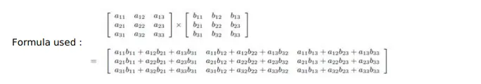 For matrix $A B, a=3, b=c=3, d=3$, thus matrix $A B$ is of order $3 \times 3$