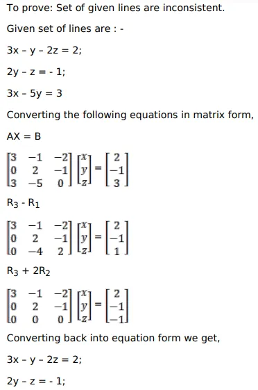 Show that each one of the following systems of equations is inconsistent.