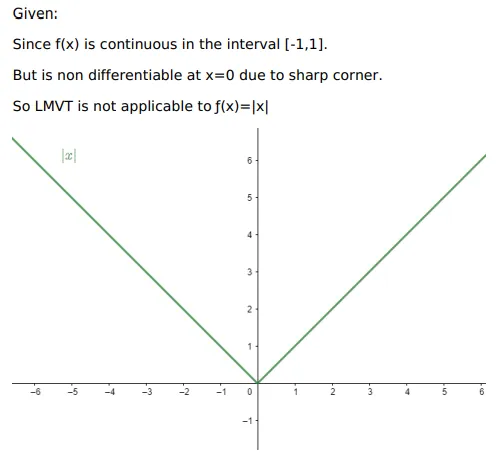 Show that Lagrange's mean-value theorem is not applicable to $f(\mathrm{x})=|\mathrm{x}|$ on $[-1,1]$.