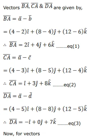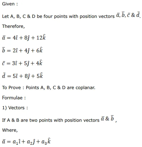 Show that the four points with position vectors $(4 \hat{i}+8 \hat{j}+12 \hat{k}),(2 \hat{i}+4 \hat{j}+6 \hat{k})$ $(3 \hat{j}+5 \hat{j}+4 \hat{k})$