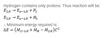 $\Delta \mathrm{E}=\left(\mathrm{M}_{\mathrm{Z}-1, \mathrm{n}}+\mathrm{M}_{\mathrm{H}}-\mathrm{M}_{\mathrm{Z}, \mathrm{N}}\right) \mathrm{c}^{2}$