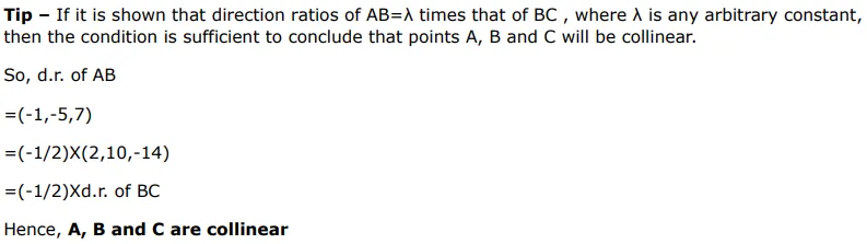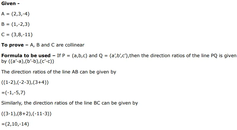 Show that the points $A(2,3,-4), B(1,-2,3)$ and $C(3,8,-11)$ are collinear.