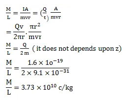 Show that the ratio of the magnetic dipole moment to the angular momentum $\mathrm{I}=\mathrm{mvr}$ is a universal constant for hydrogen like atoms and ions. Find its value.