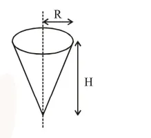 Shown in the figure is a hollow icecream cone (it is open at the top). If its mass is M, radius of its top, $\mathrm{R}$ and height, $\mathrm{H}$, then its moment of inertia about its axis is: