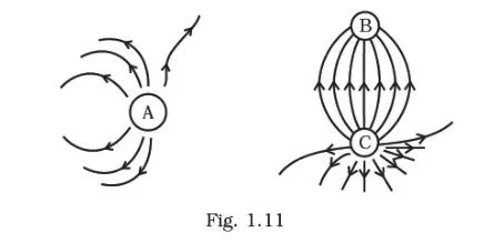 (b) Charge C has the largest magnitude since maximum numbers of field lines are associated with it.