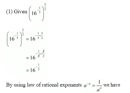 (i) $\left(16^{-1 / 5}\right)^{5 / 2}$