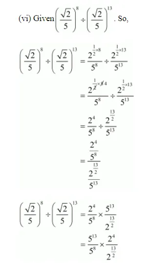 (vi) $\left(\frac{\sqrt{2}}{5}\right)^{8} \div\left(\frac{\sqrt{2}}{5}\right)^{13}$