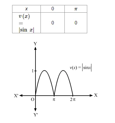 $v(x)=|\sin x|, 0 \leq x \leq 2 \pi$