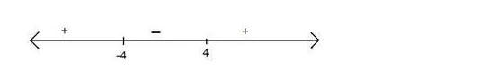 Hence $x$ should be less than $-4$ and greater than 4 for $(x+4)(x-4)$ to be positive