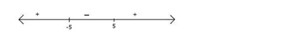 We want greater than zero that is the positive part hence x < -5 and x > 5