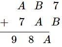 But from $7+\mathrm{B}=\mathrm{A}, \mathrm{A}=\mathrm{B}=9$ is impossible