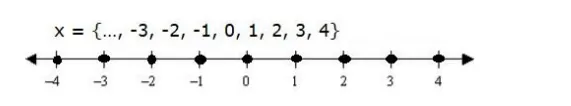 $x=\{\ldots,-3,-2,-1,0,1,2,3,4\}$