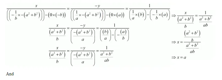 $\frac{-y}{\left(\frac{-\left(a^{2}+b^{2}\right)}{a}\right)}=\frac{1}{\left(\frac{(b)}{a}\right)-\left(-\frac{(a)}{b}\right)}$