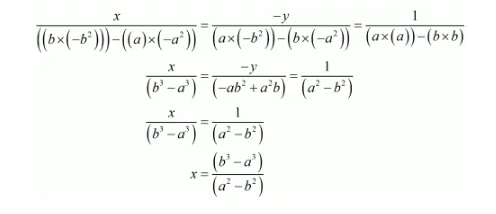 Hence we get the value of $x=\frac{\left(a^{2}+a b+b^{2}\right)}{(a+b)}$ and $y=\frac{-a b}{(a+b)}$