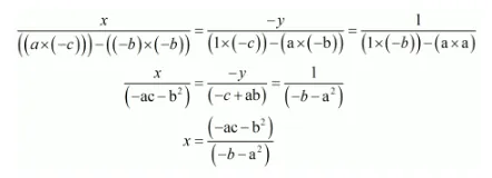 Hence we get the value of $x=\frac{\left(\mathrm{ac}+\mathrm{b}^{2}\right)}{\left(b+\mathrm{a}^{2}\right)}$ and $\mathrm{y}=\frac{(\mathrm{ab}-\mathrm{c})}{\left(\mathrm{a}^{2}+b\right)}$