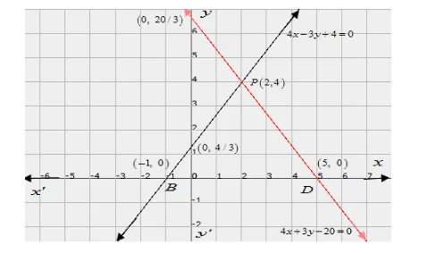 $4 x+3 y=20$ ..(ii)