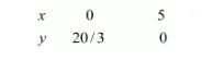 $x=0, \quad y=4 / 3$
