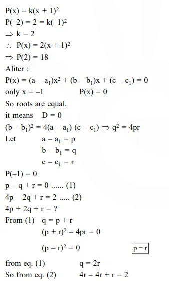 Question: Let for $a \neq a_{1} \neq 0, f(x)=a x^{2}+b x+c, g(x)=a_{1} x^{2}+b_{1} x+c_{1}$ and $p(x)=f(x)-g(x)$. If $\mathrm{p}(\mathrm{x})=0$ only for $\mathrm{x}=-1$ and $\mathrm{p}(-2)=2$, then the value of $\mathrm{p}(2)$ is