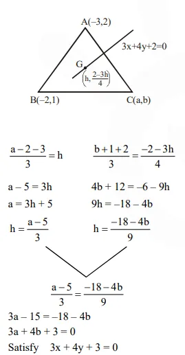 Question: Let $A(-3,2)$ and $B(-2,1)$ be the vertices of a triangle $A B C$. If the centroid of this triangle lies on the line $3 x+4 y+2=0$, then the vertex $\mathrm{C}$ lies on the line :