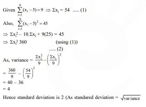 If $\sum_{\mathrm{i}=1}^{9}\left(\mathrm{x}_{\mathrm{i}}-5\right)=9$ and $\sum_{\mathrm{i}=1}^{9}\left(\mathrm{x}_{\mathrm{i}}-5\right)^{2}=45$, then the standard deviation of the 9 items $\mathrm{x}_{1}, \mathrm{x}_{2}, \ldots . . \mathrm{x}_{9}$ is