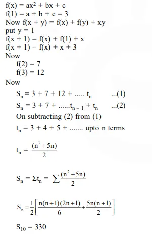 Let $a, b, c \in R$. If $f(x)=a x^{2}+b x+c$ is such that $a+b+c=3$ and $f(x+y)=f(x)+f(y)+$ $x y, \forall x, y \in R$, then $\sum_{n=1}^{10} f(n)$ is equal to :